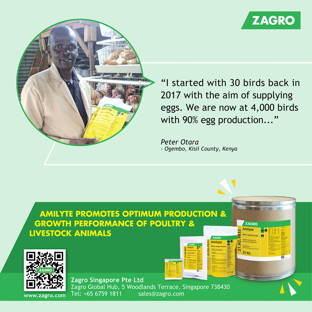 Amilyte is a water-soluble powder formulation of vitamins, electrolytes and amino acids which are all essential for promoting growth, health and productivity. Combination of these nutrients is effective in alleviating stress, dehydration and assist in fast recovery from disease outbreak. These nutrients improve appetite and feed conversion efficiency of the animal. As an ideal supplement for poultry breeders, Amilyte increases fertility, egg production and hatchability in poultry breeders and layers. Better feed efficiency and low rate of disease incidence can be observed in broilers and fatteners supplemented with Amilyte via drinking water. As a well-balanced and highly soluble supplement, Amilyte promotes overall production and performance of poultry and livestock animals.